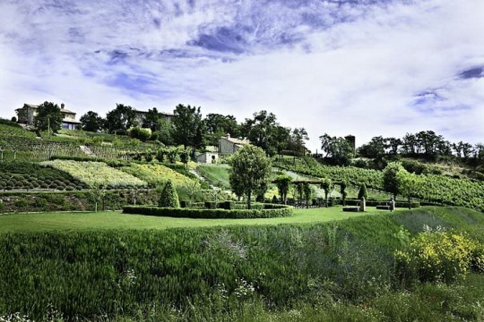 This is villa Casali di Monticchio, with classic Italian interior looks. It's located in the gentle hills bordering on Umbria and Tuscany, Italy. The villa is surrounded by three farmhouses and consists of winter garden, pool, library also billiard room. Interiors are equipped with rough wooden beams, stone, and traditional fireplaces creating an a...