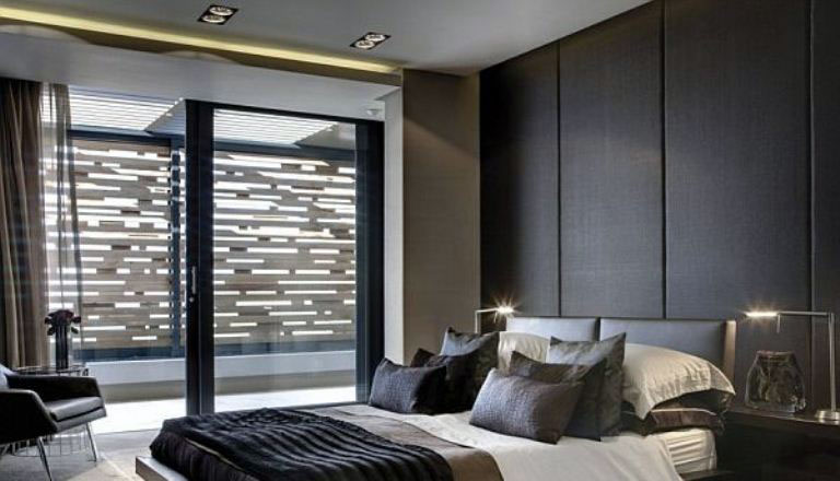 Modern Main Bedroom with Wall wall Leather Panels. Deluxe SAOTA residence by Antoni Associates.