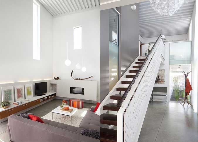 Modern Wood and White Stairs Design Beside Living Room – ProtoHomes Inspirations