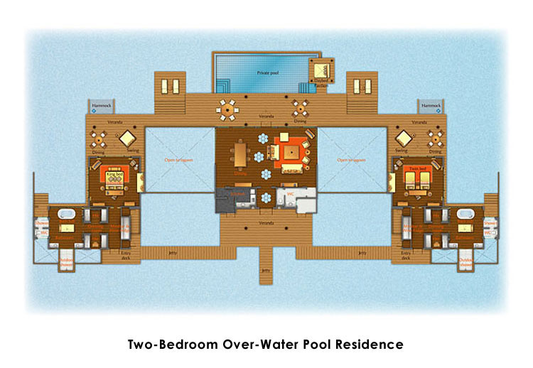 Sketch Two Bedroom Over Water Pool Beach Residance Anantara Kihavah Villas
