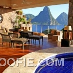 Cantilevered architecture St-Lucia luxury resort. Luxury tropical Jade Montain resort developed by Russian Designer Nick Troubetzkoy.
