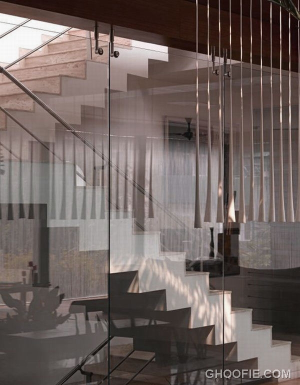 Contemporary staircase design ideas with glass barrier. This is one of the modern stair design that is functional because there is storage under the stairs. Glass insulation minimize the danger.