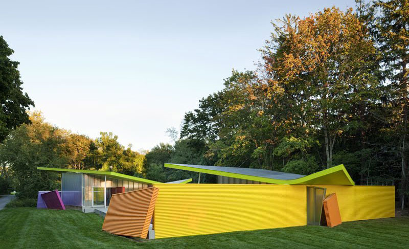Stamberg Aferiat Architecture designed the Maison Plastique. This colorful retreat spanning 1100 square feet is their own headquarters. This building is located on Shelter Island at the eastern end of Long Island, NYC. Although construction of the place is making it look slightly cramped, it consists of two independent pavilions beside the swimming pools. One contains the master suite, and another living room as well as kitchen. Photos by: WarcholPaul; Via Architizer Colorful Shelter Island Pavilion Side View Read full article »