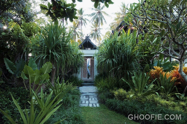Ethnic entryway villa design ideas with green environment. Like sneaking in the jungle, a small driveway surrounded with fresh greenery. Really awesome villa design ideas.