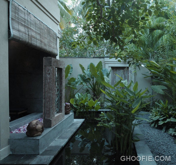 Fascinating villa design ideas with stone bathroom. Master bathroom this concept of indoor and outdoor. Looks fancy and ethnicity. There is a small pond plant decorations and as the flow of water currents.
