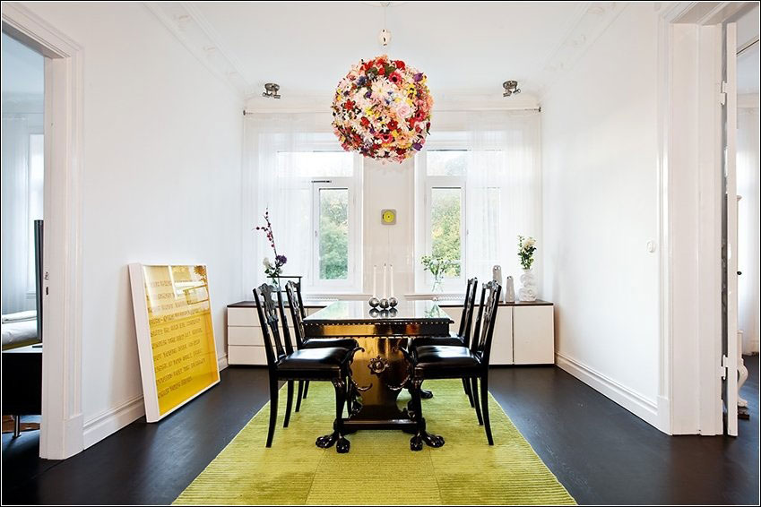 This image is titled Floral Chandelier Dining Room with Green Rugs and is attached to our interior design article about Bright and White Swedish Home Design Ideas. You can check out the article for more great ideas about Floral Chandelier Dining Room with Green Rugs, find other related photos from the same post below, or even read some of our other interior design guides.