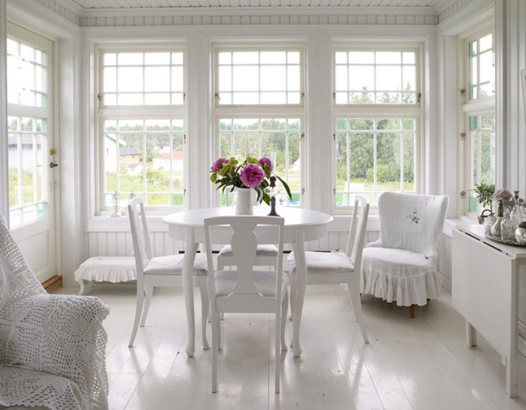 This beautiful white classic and romantic house is located in Norway. The house was build for a small family and consists of two small floors. Classic decoration in the interior is found in every room. All rooms make good use of natural wood and white colors with traditional Scandinavian features. Romantic White Dining Room with Beatuiful Flower Decor - Scandinavian Design Inspirations. Read full article »