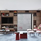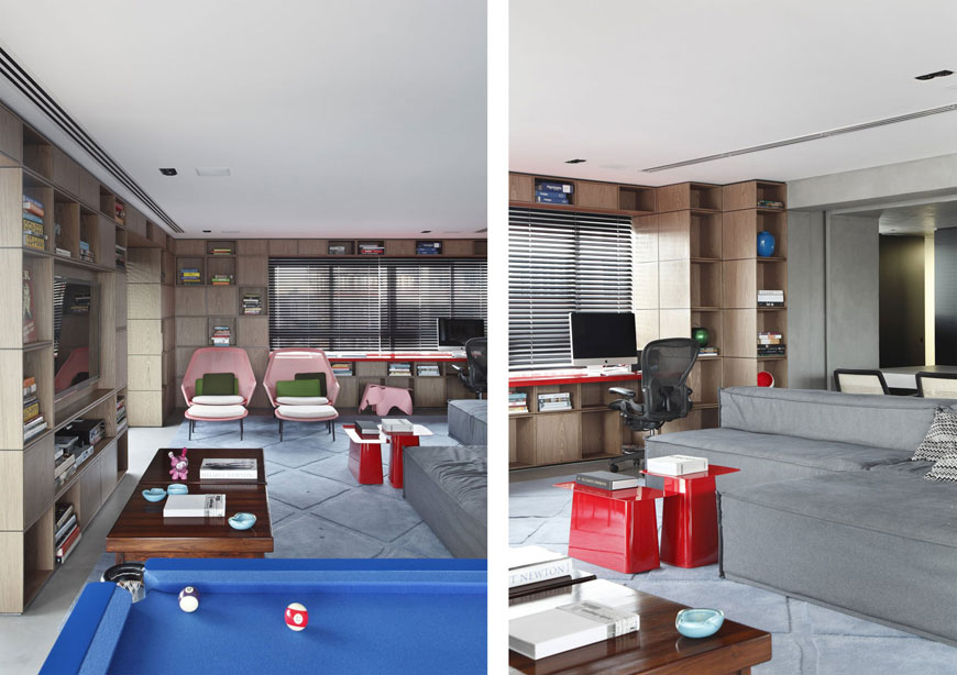 Studio Guilherme Torres redesigned this RR House in the Itaim neighbourhood in São Paulo, Brazil. This building consists of two floors. Lower floor houses the living room, surrounded by a large bookshelf and integrated with the kitchen. Home theater and a wide suite bedroom is on the second floor. Modern Design Work Room Living Room and Pool in One Area - RR House by Studio Guilherme Torres Read full article »