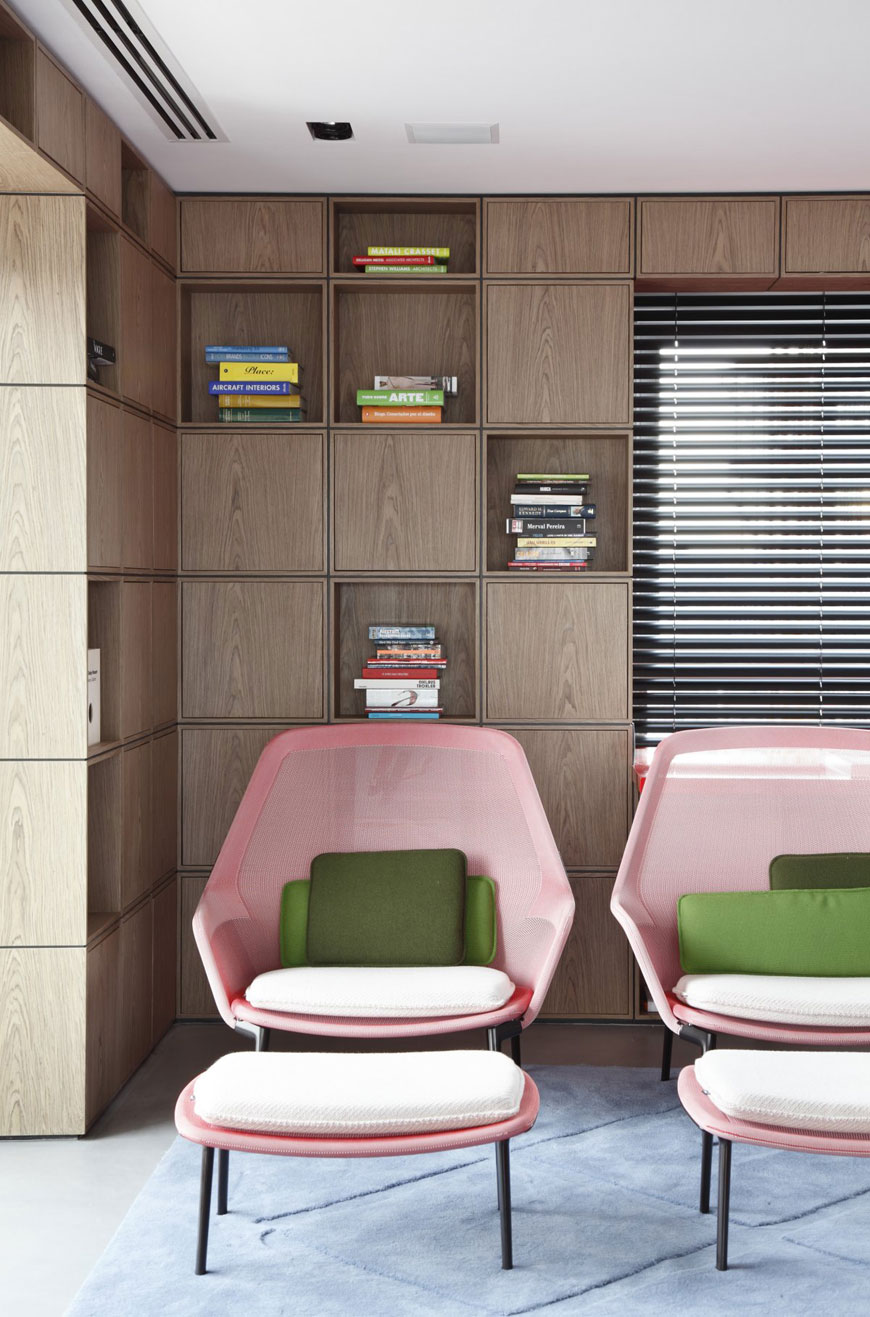 Studio Guilherme Torres redesigned this RR House in the Itaim neighbourhood in São Paulo, Brazil. This building consists of two floors. Lower floor houses the living room, surrounded by a large bookshelf and integrated with the kitchen. Home theater and a wide suite bedroom is on the second floor. Soft Pink Chairs Color in Living Room - RR House by Studio Guilherme Torres Read full article »