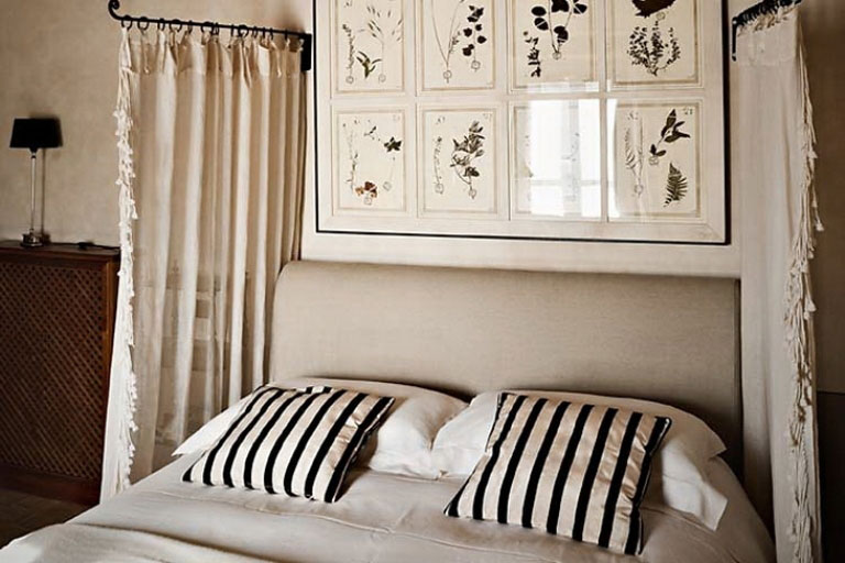 Awesome Bedroom with Striped Pilow Cover – Italian Fancy Bedroom Villa Casali di Monticchio in the genteel hills bordering on Umbria and Tuscany, Italy