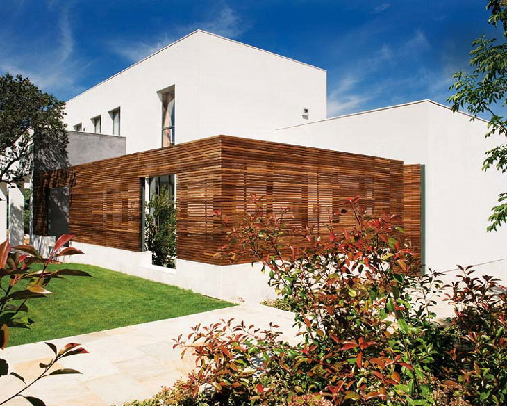 Beautiful Modern House with Wood Wall Ventilation – in suburbs of Madrid, Spain.