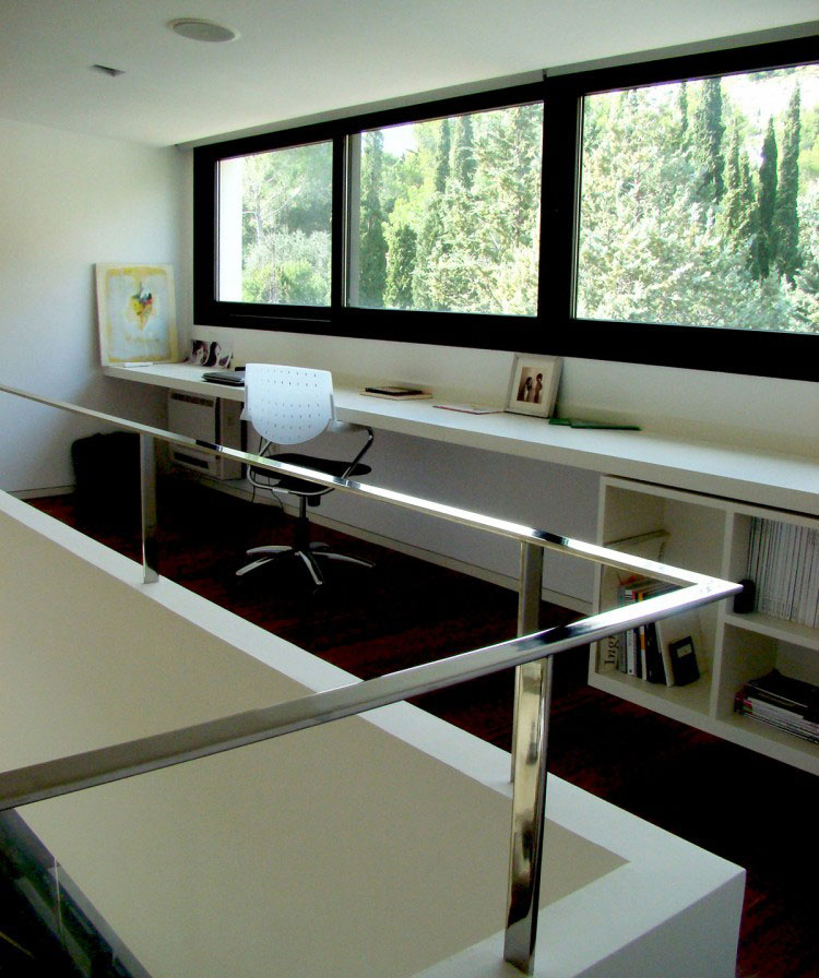 Miquel Lacomba has designed this Luxury House among the rocky hills of Pollença in Mallorca, Spain. This house consists of two floors. The first floor features an amazing living room with a fire place, pool and kitchen. Second floor has a small office and the master bedroom. Exterior features a large pool surrounded by grass. Modern Home Workspace with Forest View - Refined Opulence House by Miquel Lacomba Read full article »