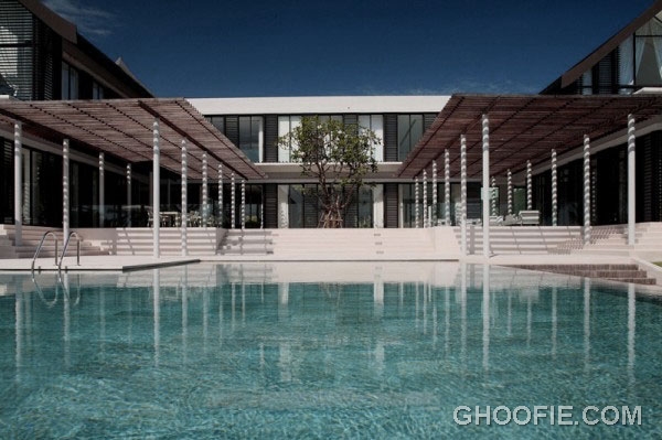 Glamorous Phuket home design with beautiful swimming pool ideas. The pool is quite spacious with a fresh beach scent. Next to the pool there is a place to relax as well as a fancy glass entrance.