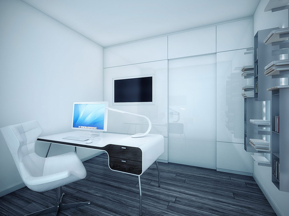 This image is titled Modern White Office Area with Wooden Floor and is attached to our interior design article about Modern and Futuristic Black and White Apartment. You can check out the article for more great ideas about Modern White Office Area with Wooden Floor, find other related photos from the same post below, or even read some of our other interior design guides.