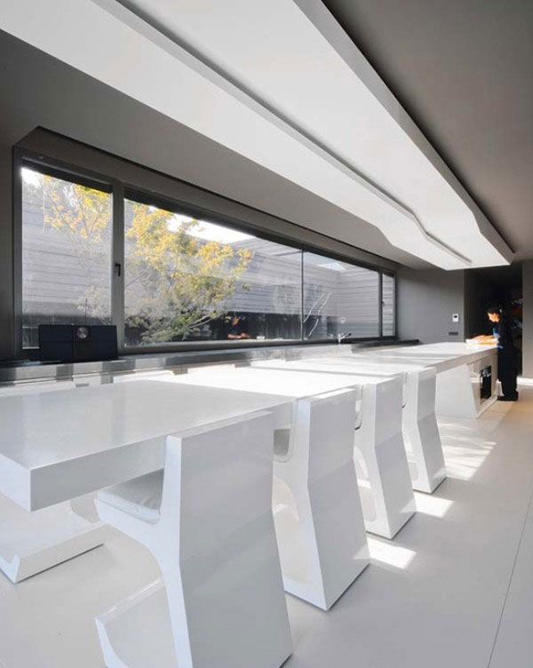 Futuristic and Beautiful White Dining Table Design – Minimalist House by Spanish architect Joaquin Torres from design studio A-cero.