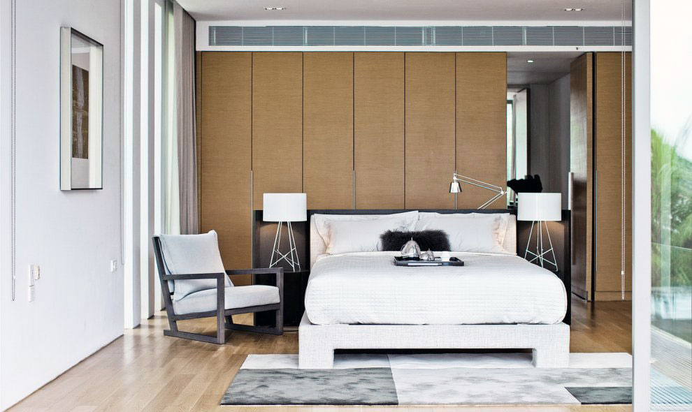 This is Sentosa Cove, a house using the best of modern architecture with open living spaces and glass walls by Beige Interior. Sentosa Cove uses large plate-glass windows as well as outdoor lounge areas to increase the living space and also to bring the sense of outdoors inside. The use of glass interior sliding doors in suite bedroom and living rooms enhances any interior door design. It also helps clarify and separate the living space in Sentosa Cove. Modern Bedroom With Brown... Read full article »
