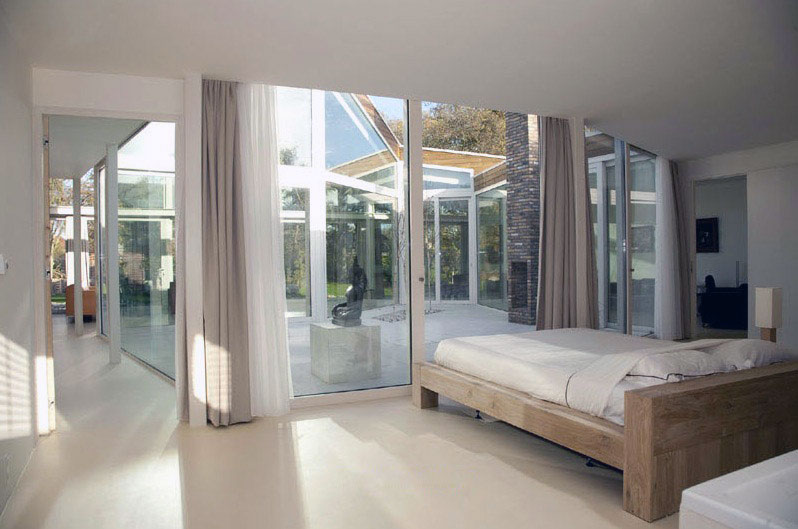 This modern glass villa is located in Burgh-Haamstede, the Netherlands. It was built by Whim Architecture. The villa looks excellent, because walls are not constructed of concrete walls or wood as one might assume but rather clear glass all around the house, which provides quite a fantastic view of the villa exterior! Scroll down to view more images. Contemporary White Bedroom Inspirations. Large curtain bedroom design ideas. Read full article »