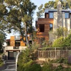 The Hillside House construction in the hills of Mill Valley California, right in opposite the famous Golden Gate Bridge from San Francisco. Hillside House designed by SB Architects. The Hillside House is a unique home custom home in Marin County, and one of only a handful in Northern California.