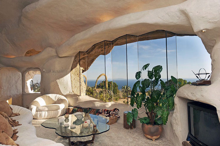 This is Dick Clark’s cool cave house with Flintstone house style ideas. This house is located on the side of a hill of the Pacific Ocean, Channel Islands, Serrano Valley. This modern cave house contains satellite TV, satellite internet, telephone, and all other modern comforts. One bedroom, two bathrooms and kitchen are all designed with Neolithic style. The rooms are cozy, many have good size windows with spectacular sea views. Via: Dailymail Large glass window living room stone house. TV legend Dick Clark's... Read full article »