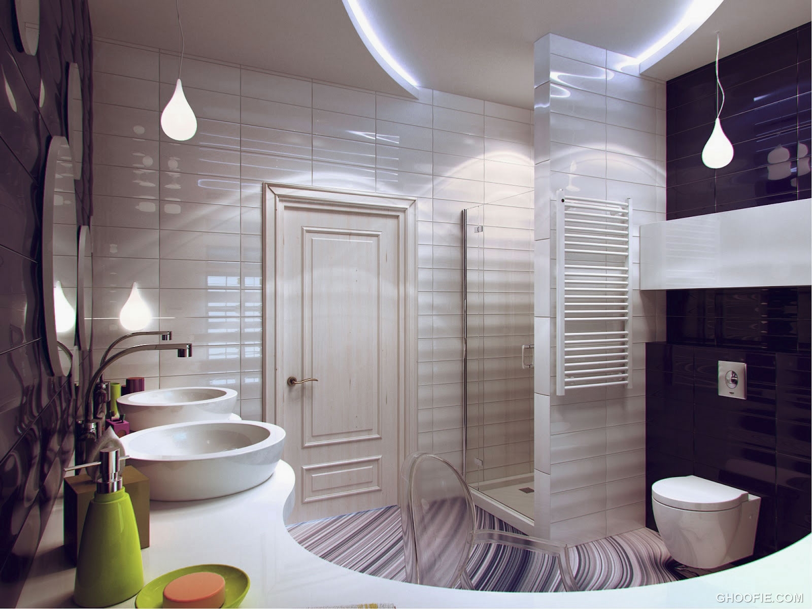 Small baths can still feel spacious when designed with creativity. Choosing the right furniture, equipment and fittings is crucial, as is thoughtful planning of space and a considered emphasis on dimensions. We invite you to check these several great ideas on how to make the most of a small bathroom and these pictures should inspire you. Via: Ulaluls, Rusu Ruslan, My Design Review Modern purple white bathroom decor. Ceiling light shades comprise the design of this small bathroom for an alluring look. Read full article »