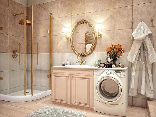 Luxury Bathroom with Gold Element – Jaw Droppingly Bathrooms. Small Bathroom IDEAS and washing machine