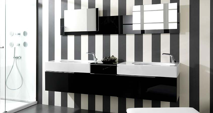 Black and white bathrooms are the staple of modern interior decorating style. It appears clean and combining these two colors is easy even if you’re picking all furniture yourself. Below is one seriously cool black and white bathroom design from Noken. This bathroom is very elegant, and uses a combination of modern glossy wall cabinets and striped walls. Certainly an interesting pairing, but it just works so well together. Take a look. Modern Black and White Bathroom Sinks with Striped Wall by... Read full article »