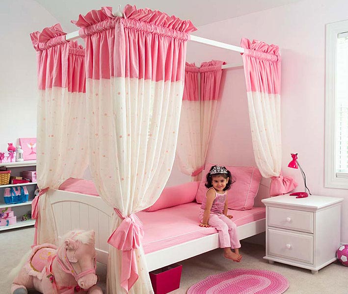 Princes Pink Bedroom with Canopy Bed – Teenagers Rooms Design with Circular Beds
