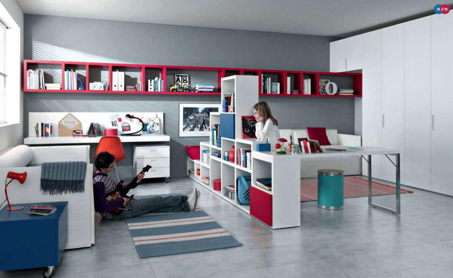 Cool Red White Blue Contemporary Teenagers Room Design Ideas
