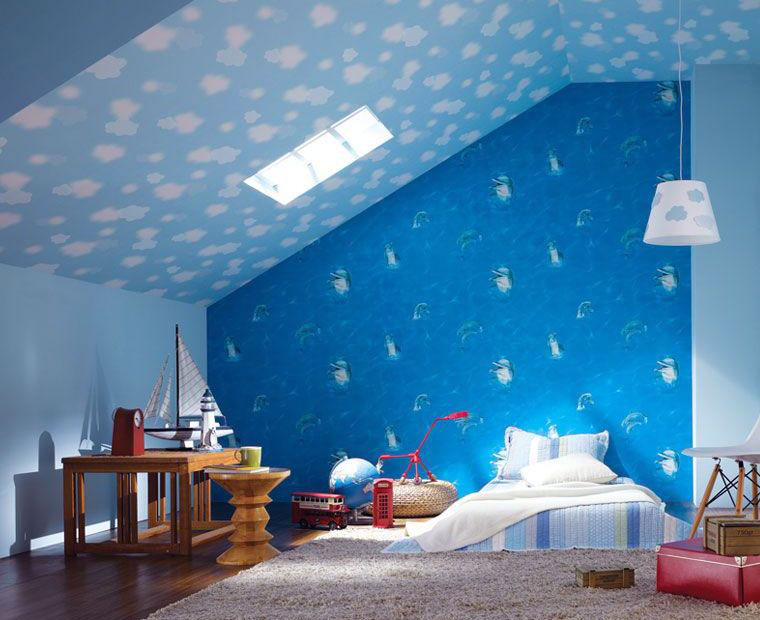 The most popular theme for a room for girls – princesses and fairies; for boys – the sea and cars. You may think it’s trivial, but kids love this stuff. LG Hausys collection has a few very smart wallpaper ideas for boys and girls rooms. Blue dolphin wallpaper Clouds on Sloping Ceiling. Soft colors illustrative wallpaper design for kids room. Read full article »