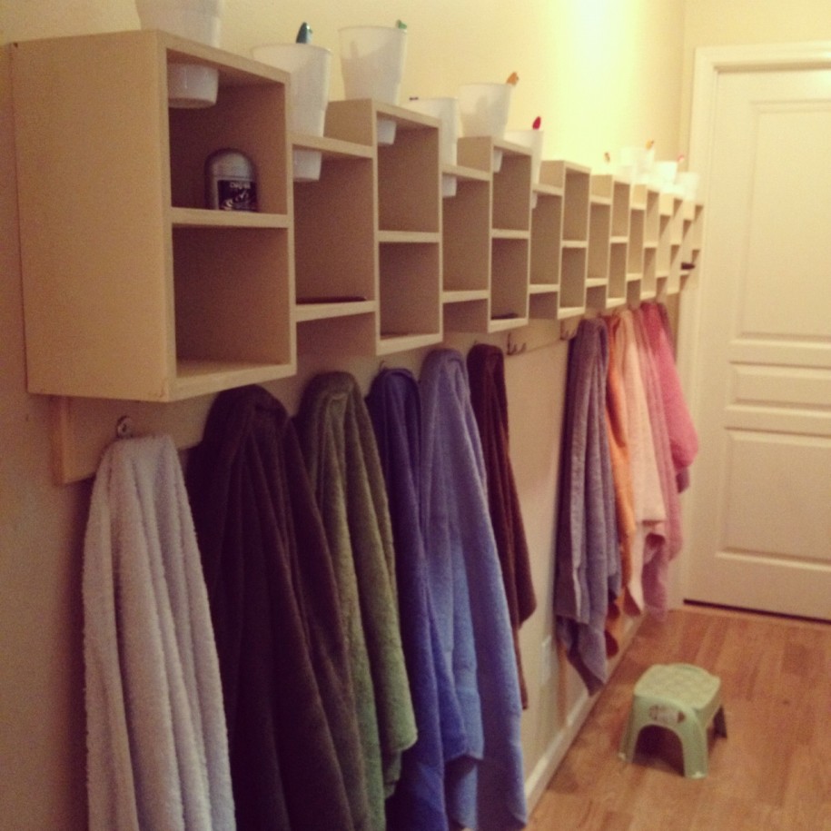 ‹ Return to Colorful Towels Cubby Towel Storage Bathroom Wooden Floor Tiny Stool