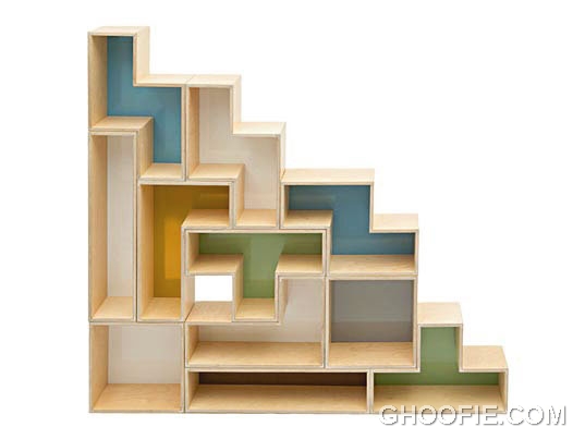 New model tetris shelves design. A shelves made of plywood. What makes it unique is the shelves shape like a tetris game.
