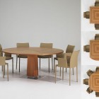 This smart modern wood dining table is a great example of multi-functional modern furniture that fits well in many homes and apartments. The dining table is easily transformed into a round table, giving comfortable seating positions for up to eight people.