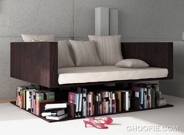 Awesome levitating sofa with bookcase design ideas. This unique sofa is named Ramsa, created by Younes Duret. In addition to the unique shape, this sofa is so that we do not have to step in to take our favorite book.