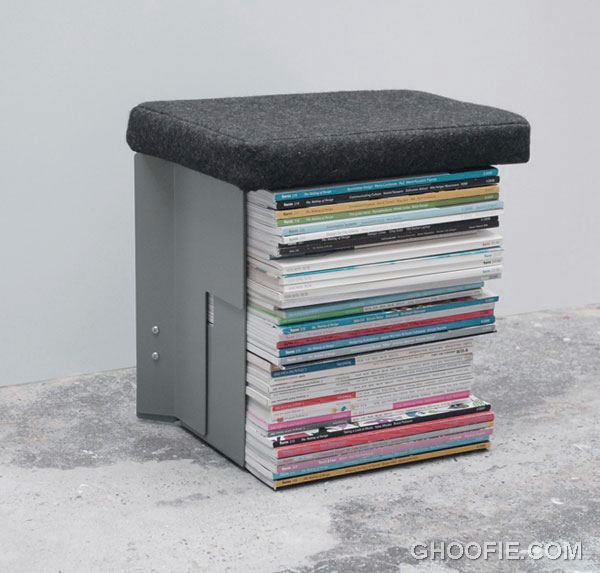 Functional seat design ideas with book storage. This is a bench design that is functional. This bench can also be used as a magazine rack. Bench height in accordance with the contents of the magazine in the rack.