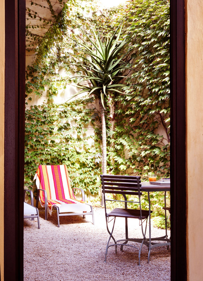 Small Courtyard with Palm Tree and Outdoor Chair