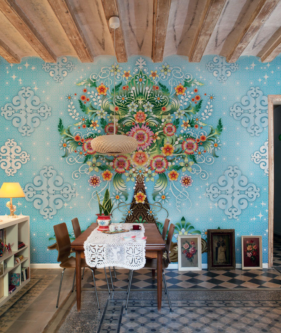 We’re presenting a few inspirational art and illustration wallpapers by Catalina Estrada, a creative art director based in Barcelona. On the aesthetic side, wallpapers from Catalina Estrada create a more dramatic effect than many wallpapers. Blue girl floral wallpaper dining room. Designed by Catalina Estrada, Barcelona. Read full article »