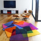 Matisse Rug is created from a playful collage of 26 hand dyed wools. The materials are derived from pure New Zealand wool. These matisse carpets are made in irregular shapes, and colorful rugs brighten any room they’re placed in.