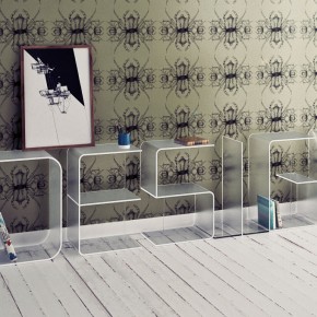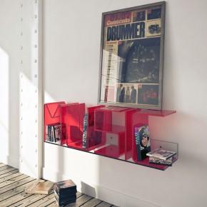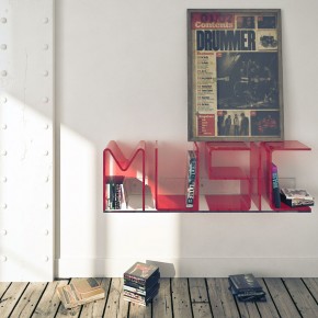 These shelves are made from individual pieces of acrylics with letters pained on them – they bring a simple yet modern look to rooms they’re placed in.