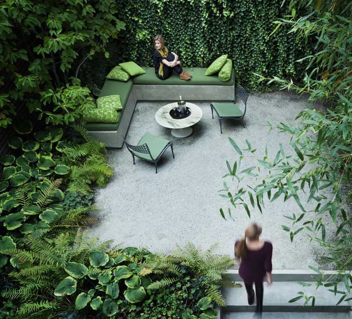 Cool Small Urban Garden with Lots of Green Decoration