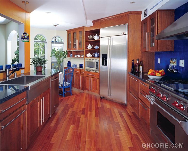This image is titled Spacious kitchen with wooden floor and is attached to our interior design article about Great Ideas & Inspiration for Kitchen Cabinets. You can check out the article for more great ideas about Spacious kitchen with wooden floor, find other related photos from the same post below, or even read some of our other interior design guides.