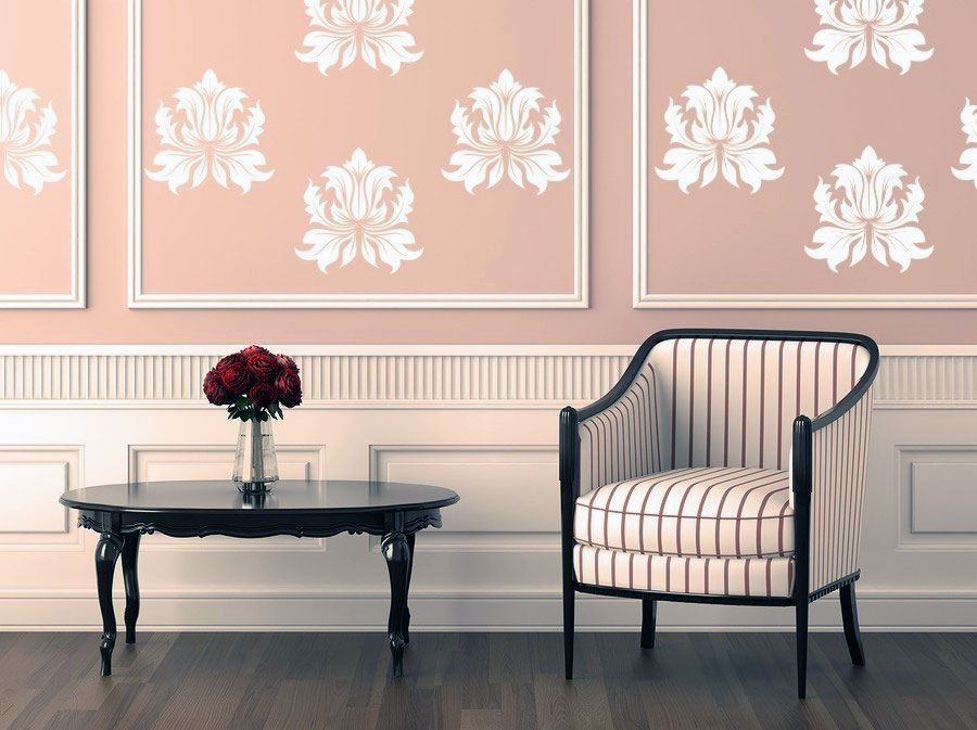 Classic Fleur De Lis Wall Stickers Ideas. Pink and beige color for living ideas.