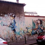Street wall murals are a growing trend in developed countries. Pasquini is a street artist based in Rome who also lived and worked in U.K. He often expresses his personal views on the wall murals.