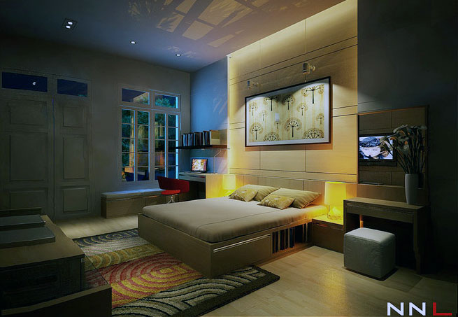 Modern Bedroom with Storage Under Bed. Warm and comfort luxury bedroom ideas.