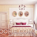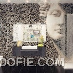 Modern bedroom has a very playful appearance, with colorful accents and decorated walls, bringing thoughts of intrigue and fun. Very exquisite and elegant bathroom features a mosaic tile wall.