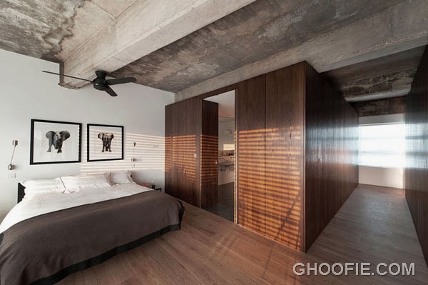 Charming bedroom loft design with concrete ceiling. This design of bedroom is very interesting because it combines concrete and wood. The elegant modern style inherent in the design of this bedroom.