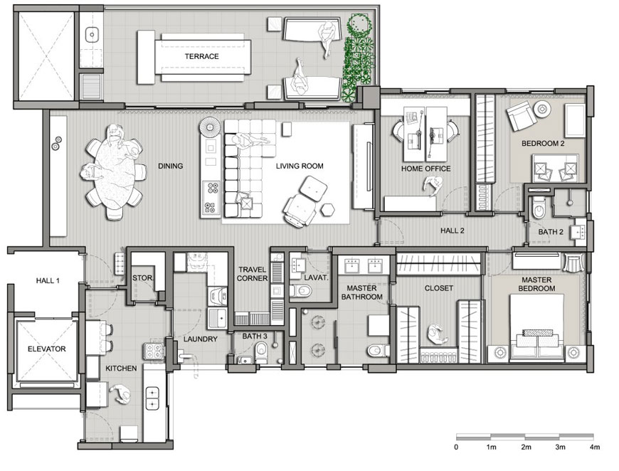 This modern apartment by Kwartet Arquitetura is located in São Paulo, Brazil. The interior is minimalist and features traditional Brazil refinement. The most interesting thing in this apartment is the “travel corner” in the living room, where the owners can display all the souvenirs they bring from their trips. Living room with wood home theater panel provides a warm atmosphere for those quiet nights at home. Enjoy the gallery! Sketch Apartment Design - Barra Funda Apartment by Kwartet Arquitetura Read full article »