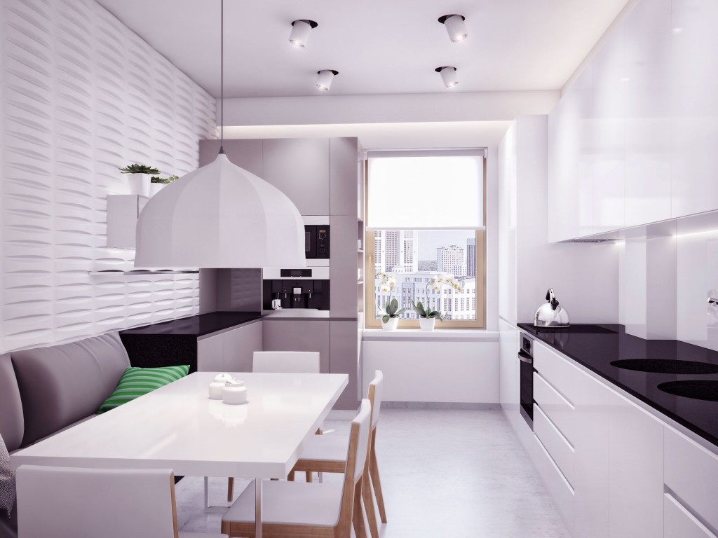Visualizing a good apartment interior design is the first step toward making a beautiful home. This Ukrainian apartment interior was designed by Alexander Chervinskyi for Azovskiy and Pahomova Architects. The apartment contains a long dining room for seating eight people, and modern black & white kitchen with breakfast dining space within its monochrome palette. Modern black white kitchen furniture sets with dining table realized by Alexander Chervinskyi for Azovskiy and Pahomova architects. Read full article »