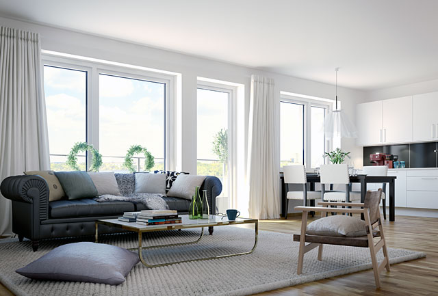 Extremely charming and well-planned modern white Scandinavian living room interior design with simple, pure and fully functional furniture. One of the principles of this design by Industriromantik is that of symmetry. Open living room is central to this design. Long couch without backrest fits very well, and applying a couple of coats of white paint easily created a clean modern Scandinavian look. Large space white living room with leather couch. Minimalist living room with luxury sofa ideas. Read full article »