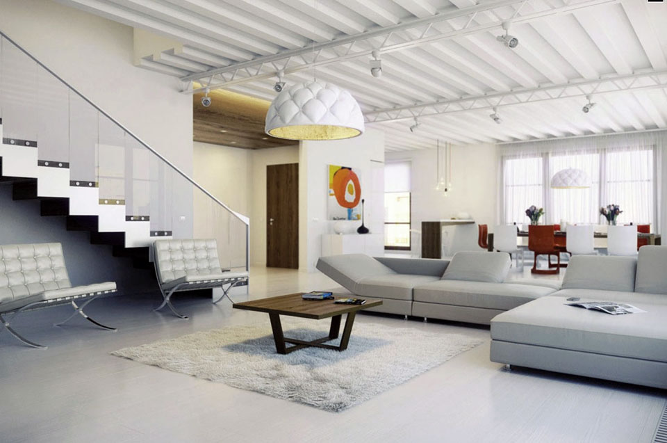 Konstantin Andreev has transformed and renovated many warehouses into modern colorful lofts, including this one. This modern loft space has sizable windows to give natural light in the room. The window dressed with sheer fabric panels looks beautiful. The urban design style combines wood , brick and plastic with modern elements and bright colors to provide the metropolitan feel. The large walls of modern loft interiors allow for the display of paintings. Glass balustrade staircase design in loft. Designed by Konstantin Andreev. Read full article »