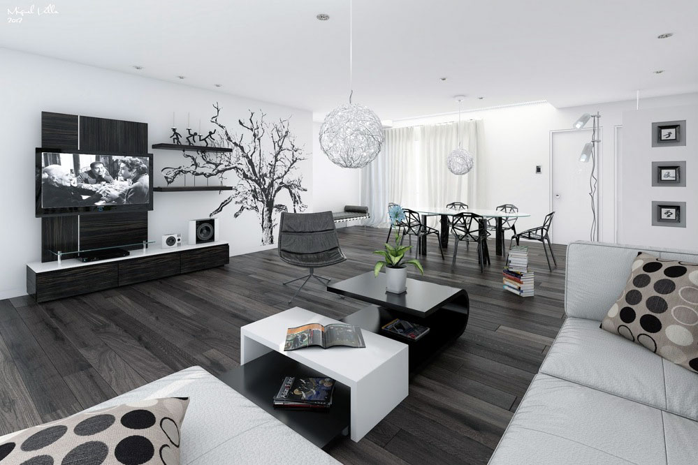 Black and white are the two most simple of colors. These colors have always been a characteristically frequent color combination in modern interior design. The reason why black and white colors work well in modern interiors is because of simplicity. Below we will take a look some contemporary black white interior inspirations. Check this out! Credits: A B C D E F G H Black white open living dining room design with dark wood wall panel to hanging flat screen TV. Read full article »